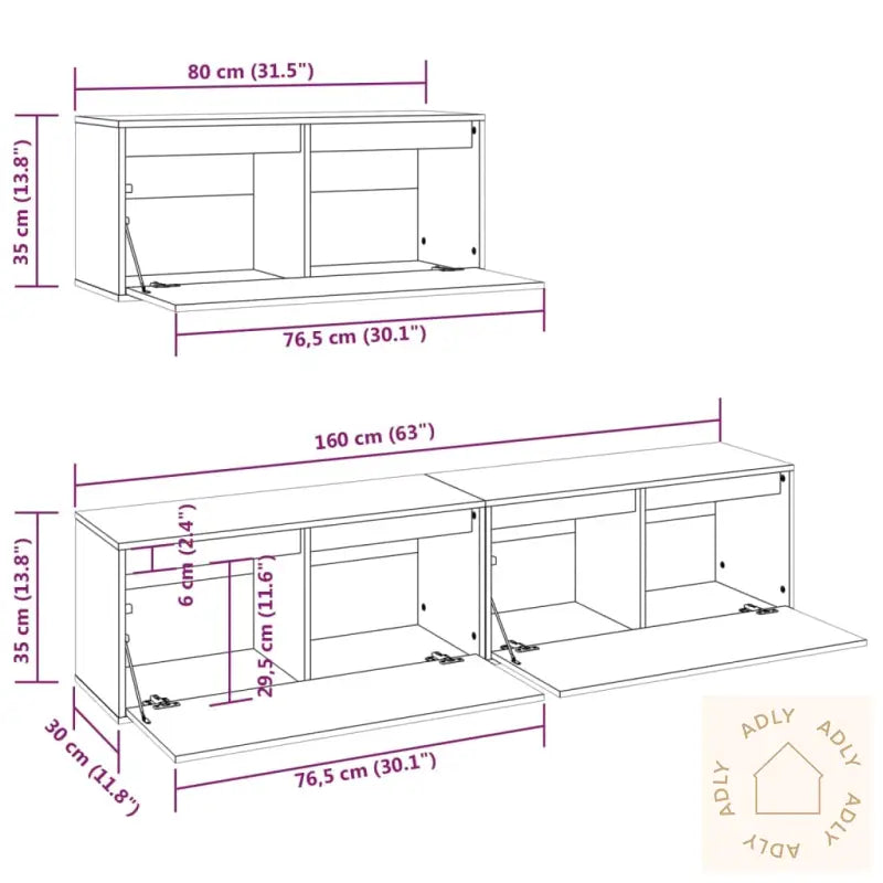 Disse klassiske TV-benkene tar rommet til et nytt nivå med sitt moderne og praktiske design, noe som gjør dem til et naturlig midtpunkt i stua eller andre oppholdsrom. Utformet i heltre furu gir de ikke bare et eksklusivt preg, men også solid stabilitet og lang levetid – perfekt for deg som vil ha møbler til hjemmet som varer. Overflaten er enkel å holde ren; bare tørk av med en fuktig klut, så ser skapene alltid pene ut.