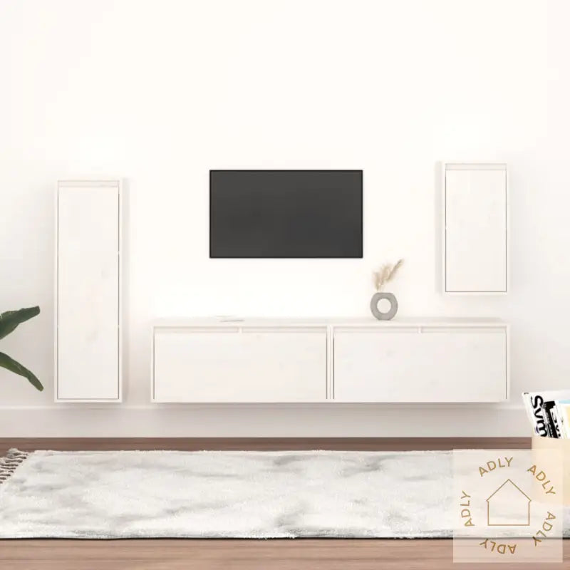 Farge: hvitMateriale: heltre furuMontering kreves: jaLeveransen inneholder:2 x TV-benker: 80 x 30 x 35 cm (B x D x H)1 x TV-benk: 30 x 30 x 60 cm (B x D x H)1 x TV-benk: 30 x 30 x 100 cm (B x D x H)