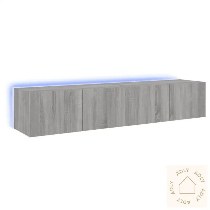 Slitesterkt materiale: Konstruert tre av høy kvalitet sørger for en jevn overflate, god holdbarhet, styrke og ekstra motstand mot fuktighet. Dette møbelet tåler daglig bruk og holder seg pent lenge.RGB LED-lys: Veggskapet er utstyrt med stilige RGB LED-lys. Med flere justerbare menyer kan du tilpasse fargene etter humør eller interiør, og til og med velge automatisk fargeveksling. RGB LED-lyset gir tv-benken et moderne preg, fremhever designet og skaper stemning i rommet – perfekt enten du ser film eller underholder gjester.Rikelig lagringsplass: Med to rom bak dørene får du nok plass til å organisere bøker, magasiner, fjernkontroller, DVD-er og andre småting, slik at alt er lett tilgjengelig og uten rot.Allsidig bruk: Dette skapet passer ikke bare som TV-benk, men fungerer også fint som et vegghengt nattbord. Du kan sette sammen flere skap og skape en helhetlig veggløsning tilpasset egne behov, og gir dermed flere muligheter for praktisk oppbevaring blant dine møbler til hjemmet.Veggmontert design: Stylingen gjør det mulig å montere skapet på veggen og frigjør gulvplass, noe som gir hjemmet et luftig og ordentlig uttrykk. Perfekt for både små og store rom hvor effektiv plassutnyttelse er viktig.Godt å vite: