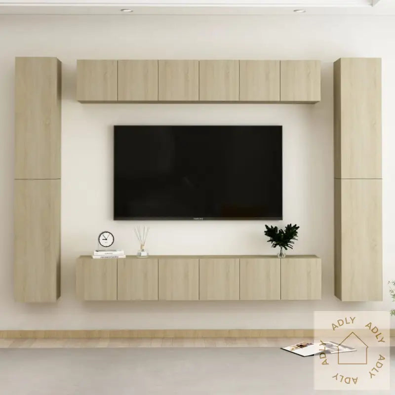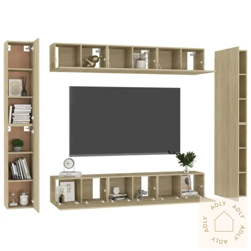Farge: Sonoma eikMateriale: Konstruert treMål (stort): 60 x 30 x 30 cm (B x D x H)Mål (M): 30,5 x 30 x 90 cm (B x D x H)Montering kreves: jaLeveransen inneholder:6 x TV-benk (L)4 x TV-benk (M)