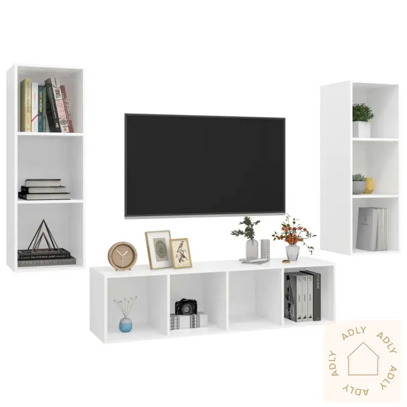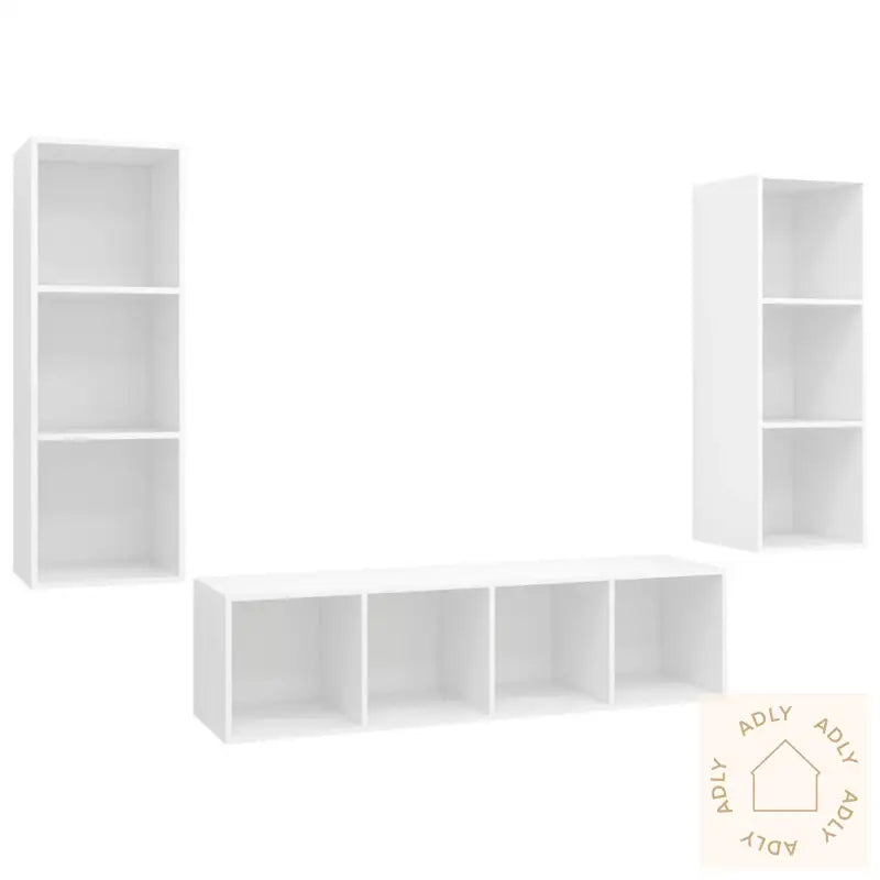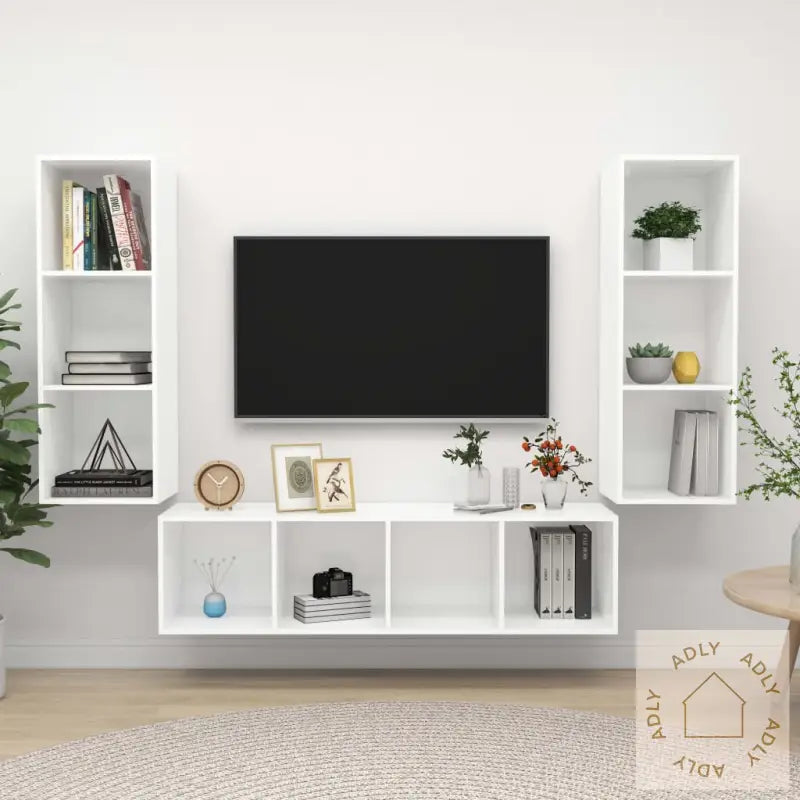 Farge: hvitMateriale: konstruert treMontering kreves: jaLeveransen inneholder:2 x TV-benker: 37 x 37 x 107 cm (B x D x H)1 x TV-benk: 37 x 37 x 142,5 cm (B x D x H)