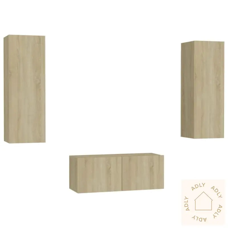 Farge: sonoma eikMateriale: konstruert treMål (L): 80 x 30 x 30 cm (B x D x H)Mål (M): 30,5 x 30 x 90 cm (B x D x H)Montering kreves: jaLeveransen inneholder:1 x TV-benk (L)2 x TV-benker (M)