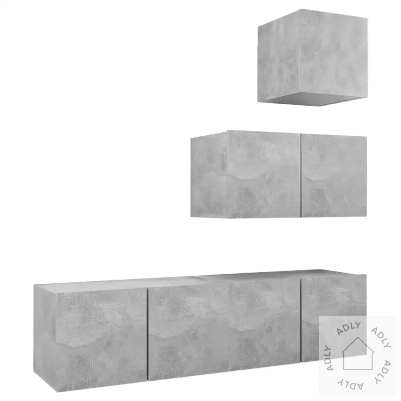 Farge: betonggråMateriale: konstruert treMontering kreves: jaLeveransen inneholder:1 x TV-benk: 30,5 x 30 x 30 cm (B x D x H)3 x TV-benker: 60 x 30 x 30 cm (B x D x H)