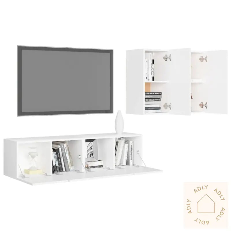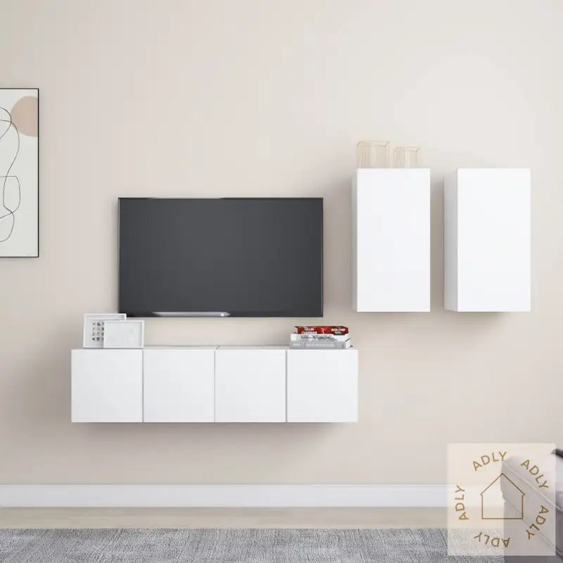 Dette vegghengte TV-benksettet gir deg masse oppbevaringsplass, noe som gjør det lettere å holde orden på alt fra fjernkontroller og magasiner til spill og annet utstyr. Settet passer perfekt inn blant moderne møbler til hjemmet, og blir et både praktisk og iøynefallende tilskudd. De rene linjene og den hvite fargen gir et stilrent preg som enkelt lar seg kombinere med andre favoritter innen hagemøbler eller bokhyller og stående hyller.