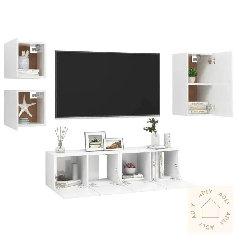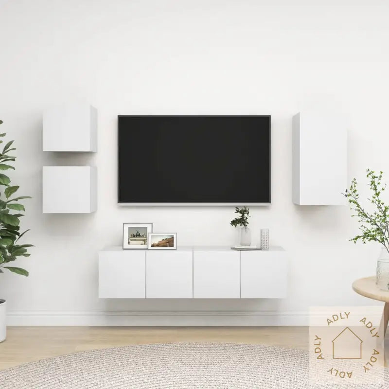 Dette vegghengte TV-benksettet gir deg mye oppbevaringsplass, slik at du lett kan organisere alt fra medieenheter til dekor og andre gjenstander. Med sitt moderne, minimalistiske design blir settet et blikkfang i hjemmet og passer godt sammen med andre møbler til hjemmet som bokhyller og stående hyller.