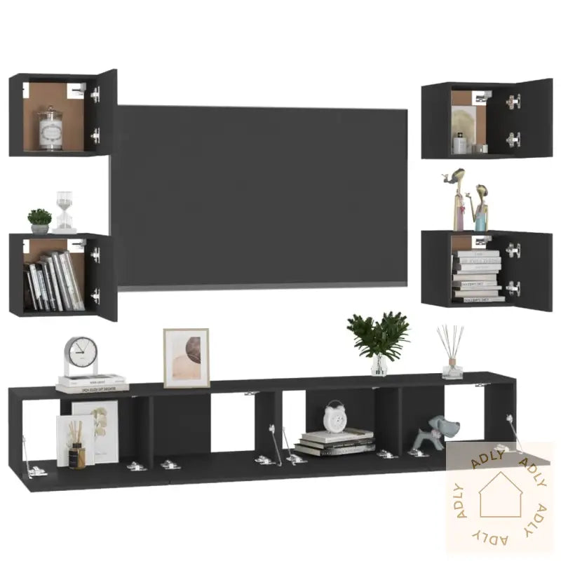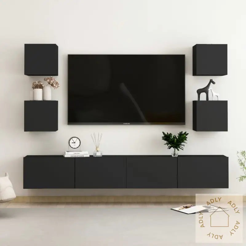 Farge: svartMateriale: konstruert treMål (L): 100 x 30 x 30 cm (B x D x H)Mål (S): 30,5 x 30 x 30 cm (B x D x H)Montering kreves: jaLeveransen inneholder:2 x TV-benk (L)4 x TV-benk (S)