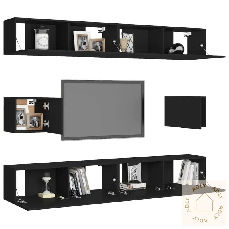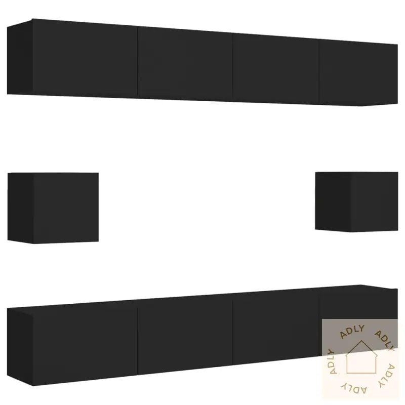 Farge: svartMateriale: konstruert treMontering kreves: jaLeveransen inneholder:4 x TV-benker: 100 x 30 x 30 cm (B x D x H)2 x TV-benker: 30,5 x 30 x 30 cm (B x D x H)