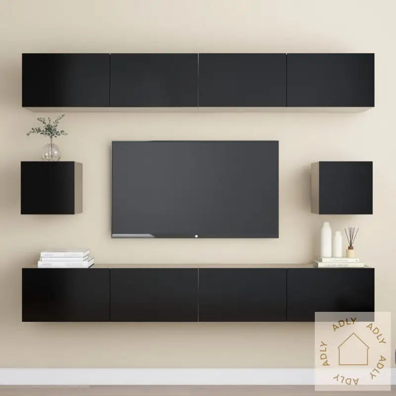 Benkenes moderne, veggmonterte design sørger for et elegant uttrykk. Benkene hever ikke bare opplevelsen av hjemmekinoen din, de gir også fine flater til dekor, bokhyller og stående hyller, slik at du kan løfte interiøret med din personlige stil. HiFi-skapsettet passer ypperlig til å vise frem favorittbøker eller pyntegjenstander – samtidig som alt blir holdt pent og ryddig på ett sted. Materialet i konstruert tre gjør også møblene slitesterke, og overflatene er lette å vaske over med en fuktig klut for enkel vedlikehold.