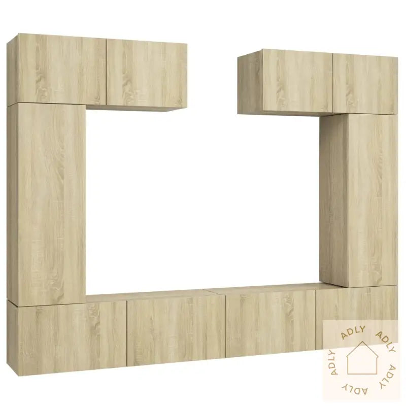 Farge: sonoma eikMateriale: konstruert treMontering kreves: jaLeveransen inneholder:Mål 2 x TV-skap: 100 x 30 x 30 cm (B x D x H)2 x TV-benk: 30,5 x 30 x 90 cm (B x D x H)Mål 2 x TV-skap: 80 x 30 x 30 cm (B x D x H)