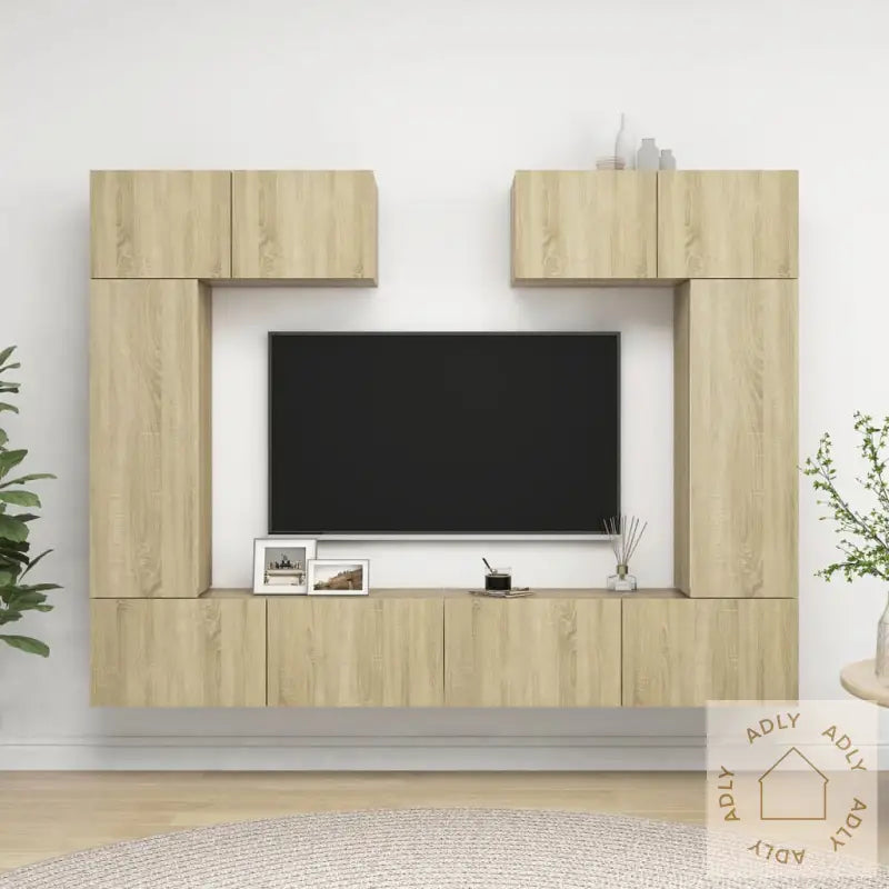 Dette vegghengte TV-benksettet i sonoma eik gir deg godt med oppbevaringsplass, slik at du enkelt kan organisere alt fra elektronikk til bøker og pyntegjenstander. Det moderne designet gjør det til et stilig blikkfang blant dine møbler til hjemmet, samtidig som det er praktisk i hverdagen.