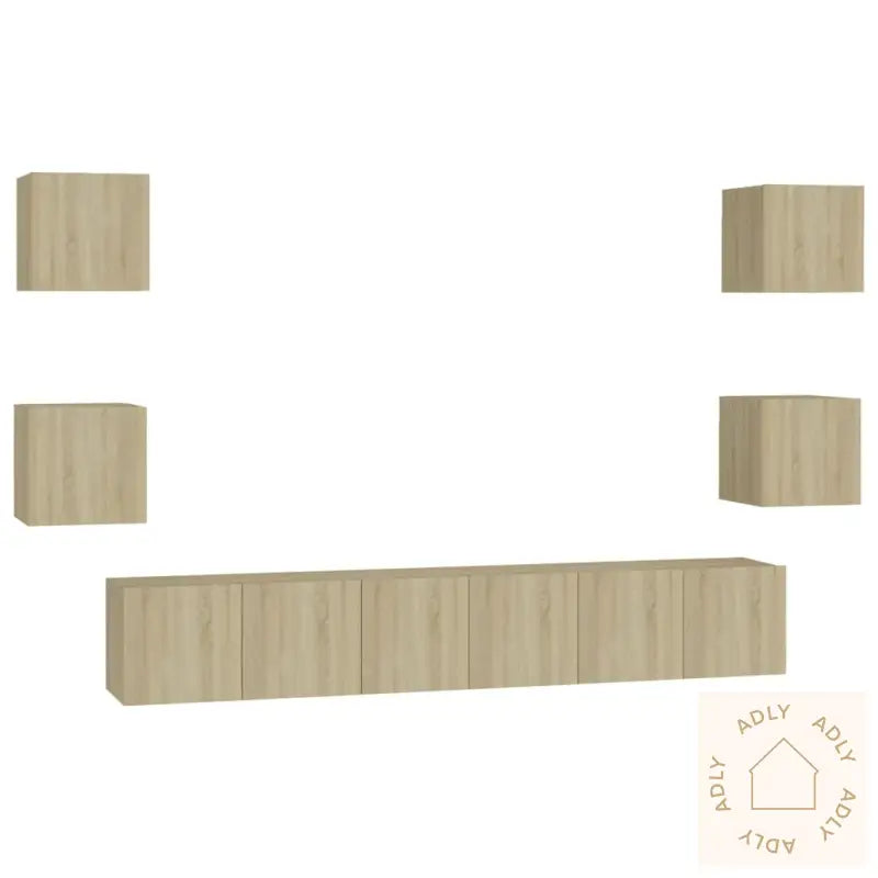 Dette solide TV-benksettet er nøye designet for å bli et flott fokuspunkt i stua, med et moderne og funksjonelt uttrykk som lett glir inn sammen med andre møbler til hjemmet. Den stilrene finishen i sonoma eik gir en varm og tidløs look som passer perfekt både til bokhyller og stående hyller, og gjør det enkelt å kombinere med annet interiør.