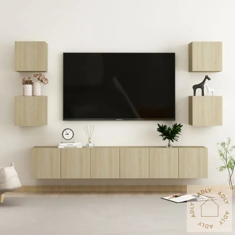 TV-stativet monteres trygt på veggen, slik at gulvplassen holdes ledig og rommet føles mer åpent. Med stødige materialer i konstruert tre får du et varig møbel som både tåler daglig bruk og ser bra ut over tid. Stereoskapet gir deg rikelig lagringsplass—ideelt for bøker, blader, DVD-er eller andre nødvendigheter, så alt har sin faste plass og rommet holder seg ryddig. Overflaten er glatt og enkel å vedlikeholde, noe som gjør rengjøringen rask—bare tørk av med en fuktig klut ved behov.
