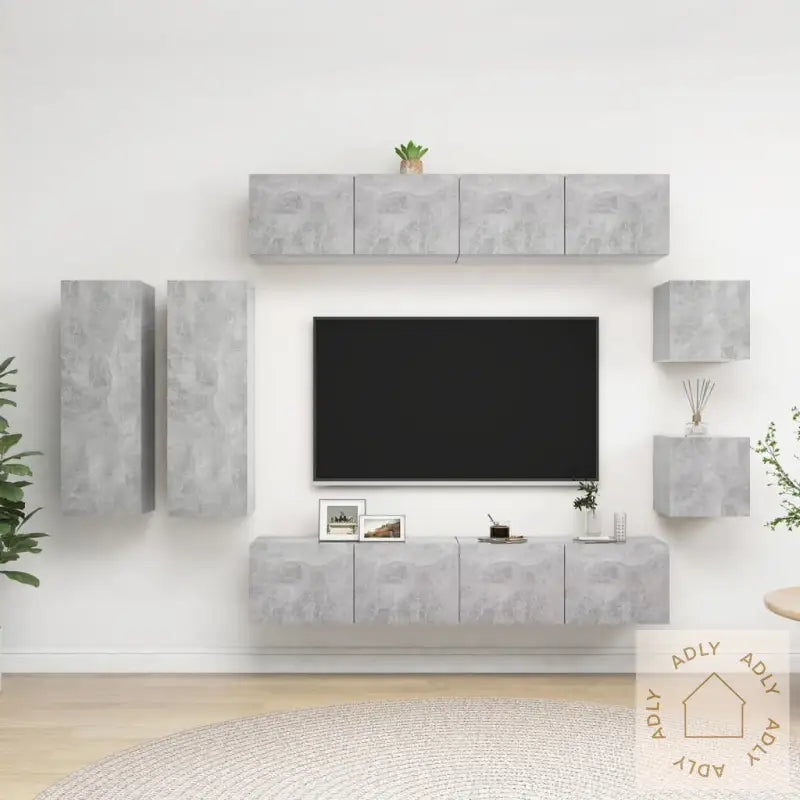 Dette vegghengte TV-benksettet kommer med rikelig oppbevaringsplass, så du enkelt kan holde styr på både fjernkontroller, konsoller og annet tilbehør. Med sitt stilrene design i betonggrå blir TV-benksettet et blikkfang og gir hjemmet ditt et moderne preg når du ser etter møbler til hjemmet. Siden TV-stativene monteres direkte på veggen, frigjør de gulvplass og gir en luftigere følelse – perfekt for å skape orden og god flyt i stua eller underholdningsrommet.