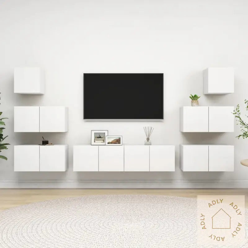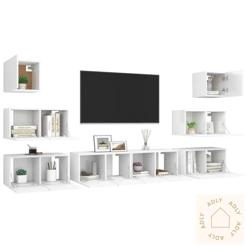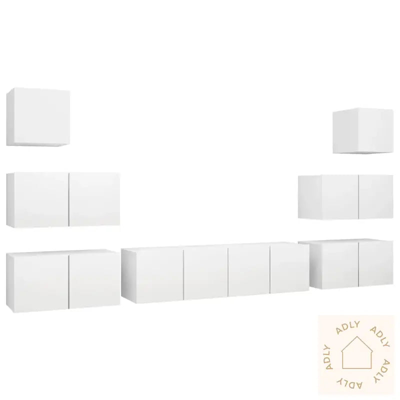Farge: hvitMateriale: konstruert treMontering kreves: jaLeveransen inneholder:6 x TV-benker: 60 x 30 x 30 cm (B x D x H)2 x TV-benker: 30,5 x 30 x 30 cm (B x D x H)