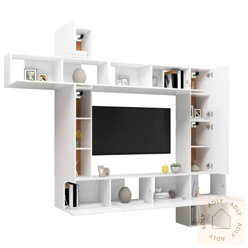 Farge: hvitMateriale: konstruert treMontering kreves: jaLeveransen inneholder:2 x TV-benker: 30,5 x 30 x 30 cm (B x D x H)4 x TV-benker: 100 x 30 x 30 cm (B x D x H)1 x TV-benk: 30,5 x 30 x 90 cm (B x D x H)2 x TV-benker: 30,5 x 30 x 60 cm (B x D x H)