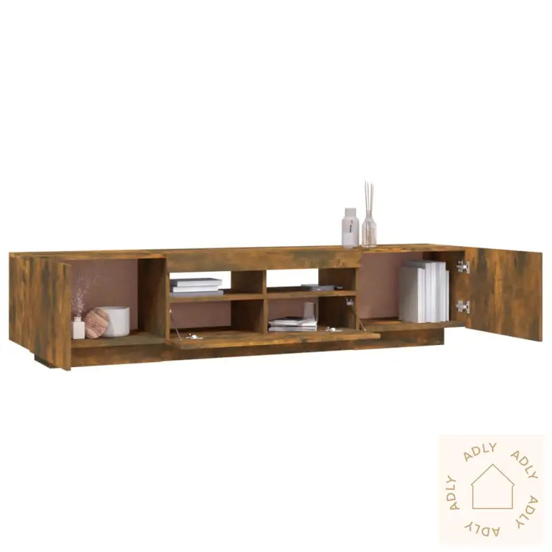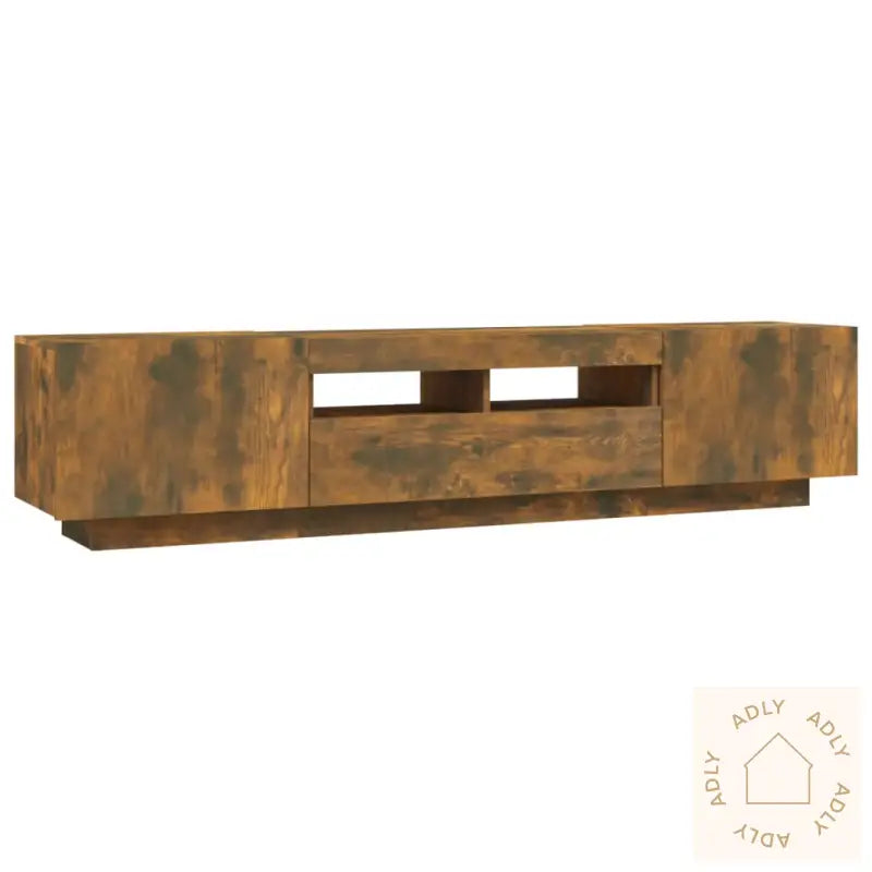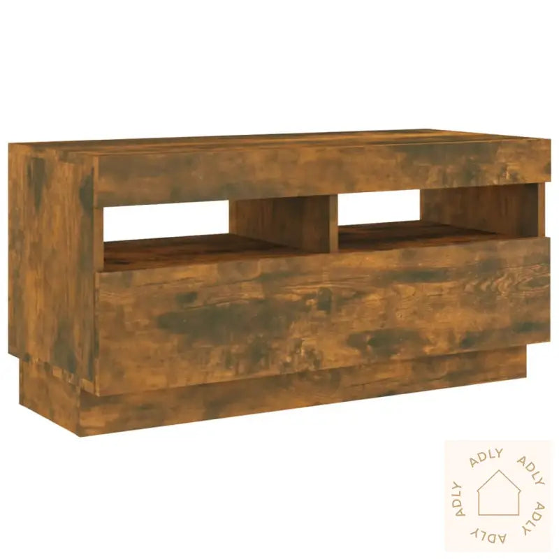 Materiale som varer: Den solide rammen i konstruert tre gir ikke bare en jevn og flott overflate, men sørger også for god styrke og stabilitet. Dette materialet er kjent for å stå imot både fukt og daglig bruk, noe som passer perfekt til travle hjem og deg som vil ha møbler med lang levetid.RGB LED-lys: Skap din egen stemning hjemme! Disse TV-benkene har RGB LED-lys med flere innstillinger for å endre lysfarge – enten du vil ha én farge eller la fargene veksle automatisk. Lysene fremhever det moderne designet og gir et personlig preg til stua. Dette gjør TV-benken til et blikkfang, og den er lett å matche med andre møbler og hagemøbler eller utendørsmøbler hvis du ønsker en helhetlig stil.God oppbevaringsplass: Her får du ikke bare kul design, men også smarte oppbevaringsmuligheter! I TV-enheten finner du ekstra rom som gjør det enklere å holde styr på alt av DVD-spillere, spillkonsoller, strømmeenheter og andre småting. Enkelt å organisere—slik holder du stua ryddig og fin.Vær oppmerksom på at produktet leveres med USB-kontakt, men du trenger en godkjent 5V USB-strømkilde (følger ikke med).Alle deler du trenger, samt instruksjoner for enkel montering, følger med i pakken.Farge: røkt eikMateriale: konstruert treMål: 100/80 x 35 x 40 cm (B x D x H)Leveransen inneholder:1 x TV-benk med LED-lys1 x TV-benk1 x USB-kontakt
