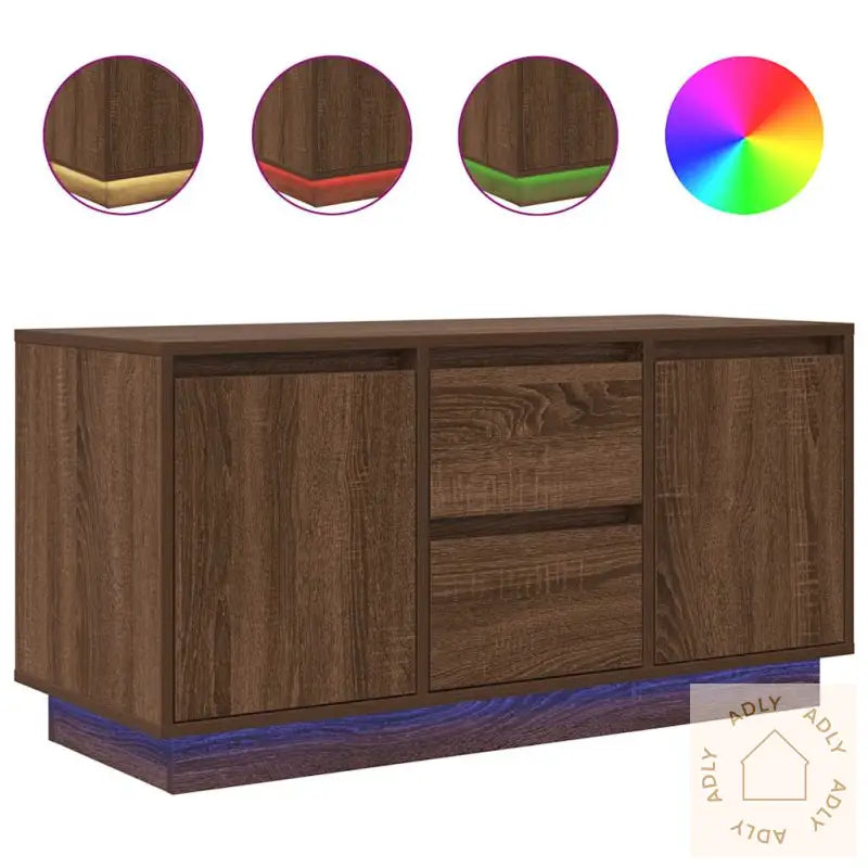 LED-lysene leveres med en USB-kontakt, og du trenger en sertifisert 5V USB-strømkilde (ikke inkludert i pakken).Farge: brun eikMateriale: konstruert treTotalmål: 100 x 41 x 50 cm (B x D x H)Skuffedimensjoner (hver): 31 x 33,5 x 17,5 cm (B x D x H)Med 2 skuffer og 2 dørerMontering kreves: jaDenne TV-benken i flott brun eik passer perfekt sammen med andre moderne møbler til hjemmet og kan enkelt kombineres med både innendørsmøbler og utendørsmøbler fra vårt sortiment hvis du ønsker en helhetlig stil i boligen.