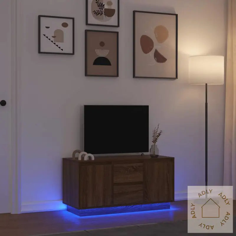 Denne TV-benken med LED-lys i brun eik har et stilig og gjennomtenkt design, noe som gjør den til et naturlig midtpunkt i enhver stue. Den er laget av konstruert tre, et robust materiale som gir langvarig stabilitet og slitestyrke. Materialet tåler fuktighet uten å vri seg eller sprekke, og passer derfor godt til møbler til hjemmet som brukes daglig.