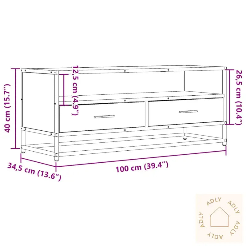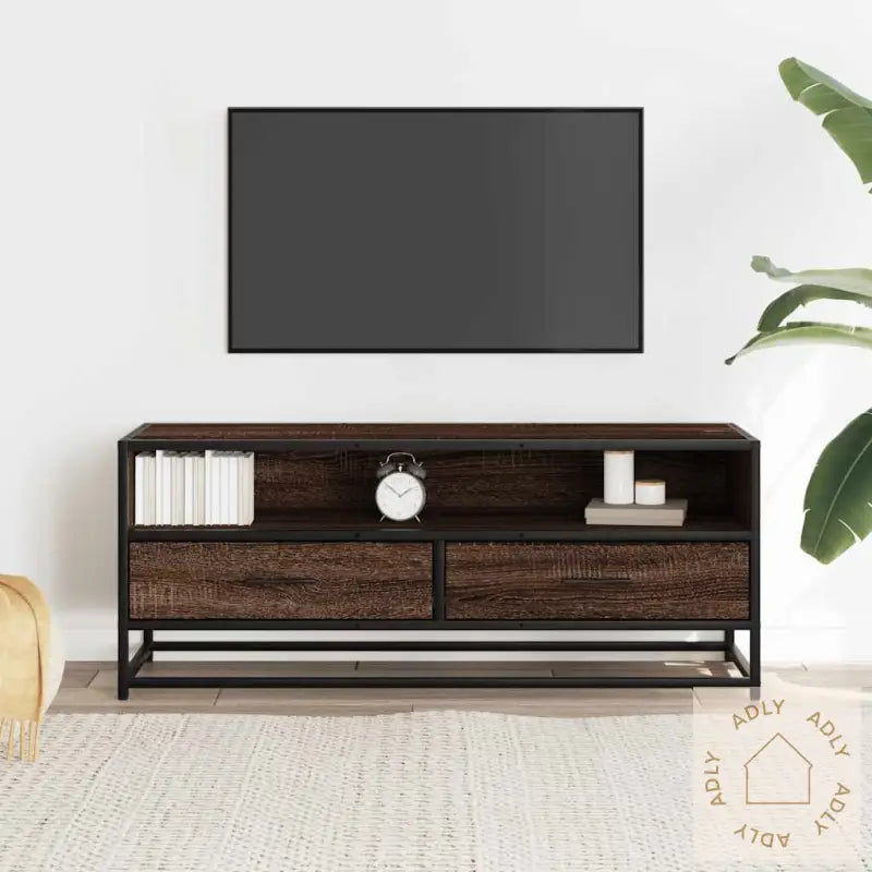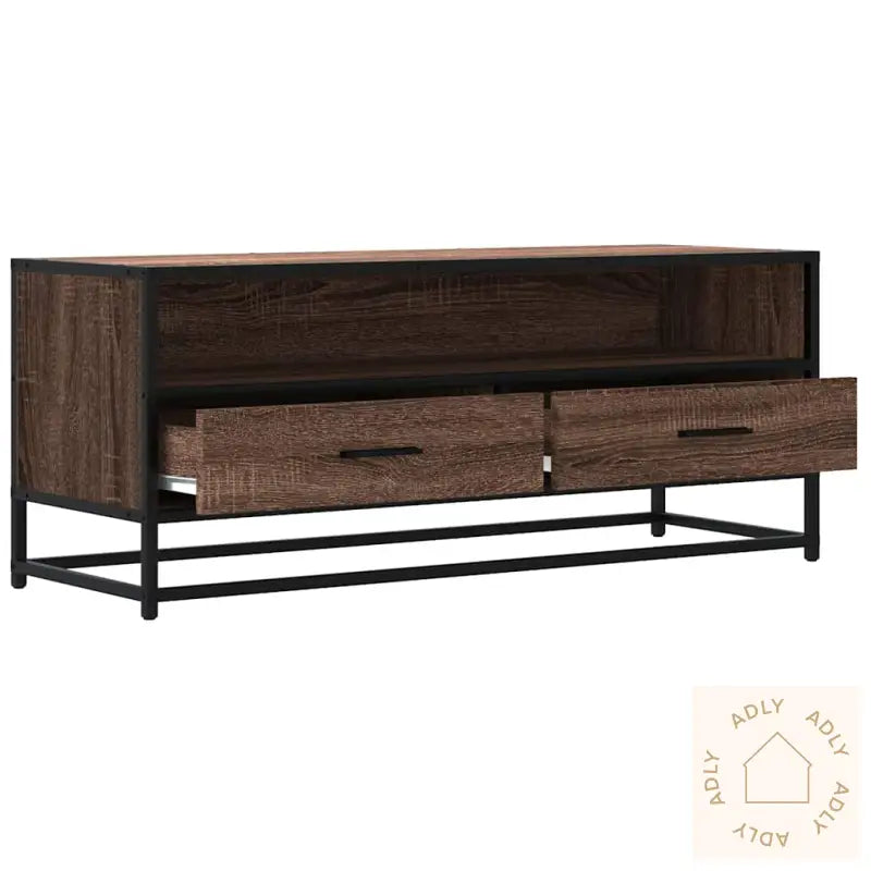 Stabil og langvarig ramme: Den solide metallrammen har en kul industriell look som gir interiøret karakter, og sørger for ekstra holdbarhet og stabilitet. Materialet tåler mye, er slitesterkt og motstandsdyktig mot korrosjon, så du kan stole på kvaliteten lenge.Stabilt og slitesterkt materiale: Benkens konstruerte treverk gir en jevn og stilren overflate. Dette materialet er kjent for å stå imot fuktighet, vridning og sprekker – noe som gjør det til et smart og sikkert valg for hagemøbler og andre møbler til hjemmet.Rikelig med oppbevaringsplass: Her får du mye praktisk lagring for alt av magasiner, bøker, DVD-er og multimedieenheter. Alt har sin plass, så rommet føles alltid ryddig og oversiktlig.Stabil og solid bordplate: Den robuste toppen tåler vekten av TV-en, lydanlegg eller pynt som vaser og potteplanter, så du kan style TV-benken etter egen smak uten bekymring.Enkel å vedlikeholde: Overflaten er glatt og enkel å holde ren, og alt som trengs er en rask tørk med en fuktig klut.Farge: brun eikMaterialer: konstruert tre, metallSamlet mål: 100 x 34,5 x 40 cm (L x B x H)Montering kreves: ja