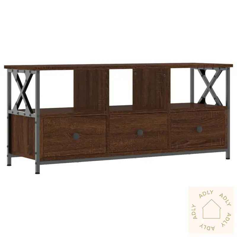 Materialet i TV-benken kombinerer det beste fra konstruert tre og jern for ekstra styrke og stabilitet, slik at du får et møbel som tåler mye bruk over tid og står stødig i stua.Med tre romslige åpne rom samt tre skuffer har du masse lagringsplass til alt du trenger – fra DVD-spillere og konsoller til fjernkontroller, filmer og spill. Dette gjør det enkelt å holde stua ryddig og organisert, samtidig som alt du bruker ofte er lett tilgjengelig.Den robuste toppen gir god plass til dekor, bøker eller planter og gir deg frihet til å personliggjøre innredningen med dine favoritter.Farge: brun eikMaterialer: konstruert tre, jernMål: 102 x 33 x 45 cm (B x D x H)Montering kreves: ja