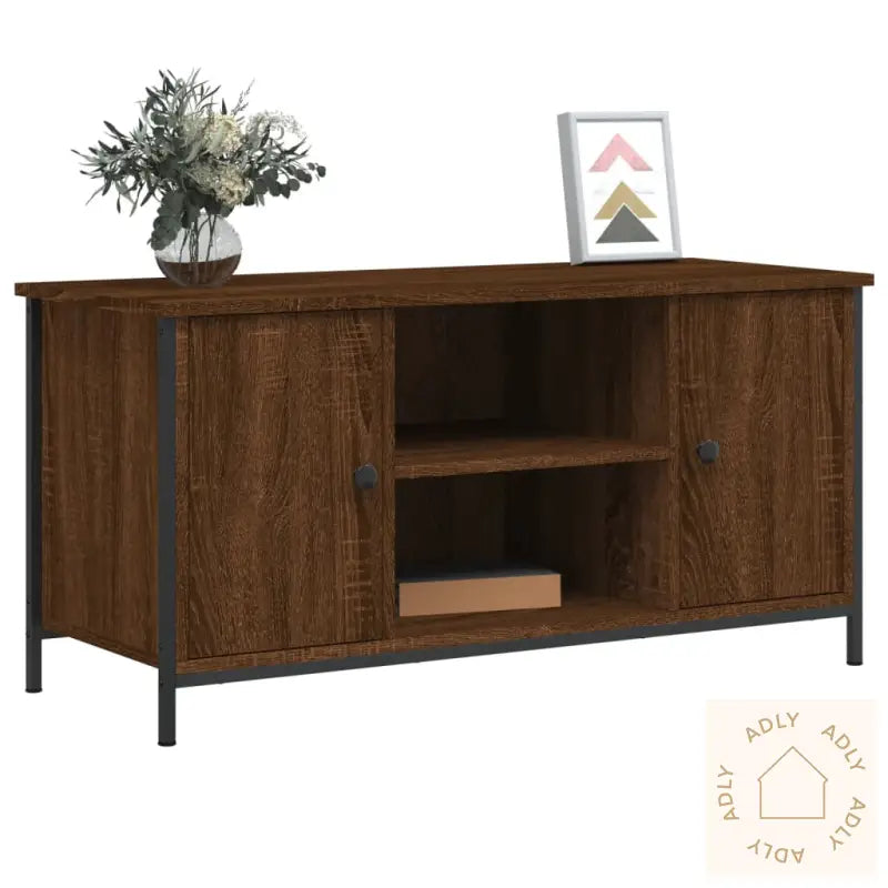 Denne klassiske TV-benken i brun eik er et allsidig og blikkfangende møbel til hjemmet ditt. Den kombinerer praktisk lagring med et stilig design som enkelt passer inn sammen med andre møbler, som hagemøbler og bokhyller.