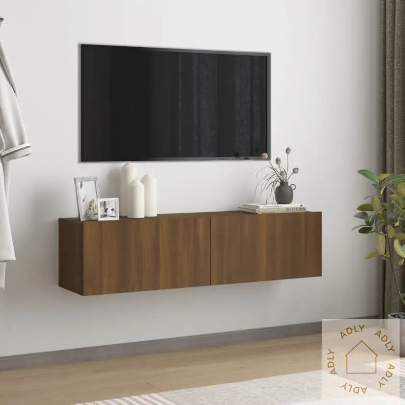 Denne TV-benken er enkel å feste på veggen, og gir dermed et praktisk og dekorativt løft til innredningen. Med et vegghengt design får rommet et moderne preg, samtidig som gulvplassen holdes fri og enkel å rengjøre.