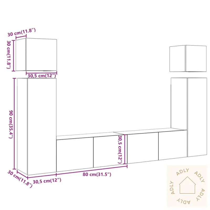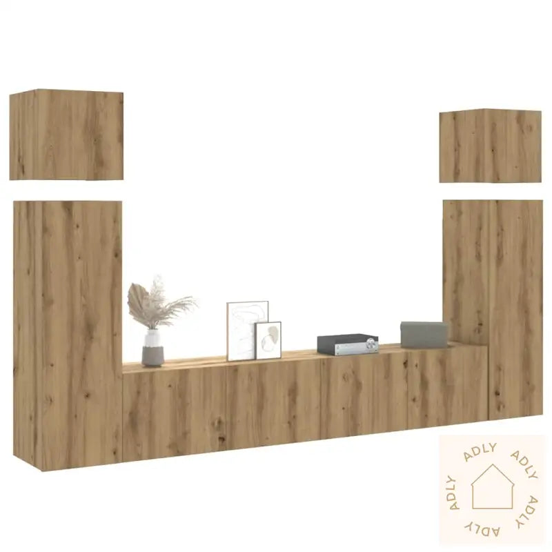 Skruer og plugger til å feste møblene på veggen følger ikke med. Finn riktig type festemidler som passer dine vegger, og les nøye gjennom monteringsanvisningen for et trygt og sikkert resultat. Vi anbefaler å kontakte en fagperson hvis du er usikker.Farge: artisan eikMateriale: konstruert treMontering kreves: jaLeveransen inneholder:4 x TV-skap: 80 x 30 x 30 cm (B x D x H)2 x TV-benk: 30,5 x 30 x 90 cm (B x D x H)2 x TV-benker: 30,5 x 30 x 30 cm (B x D x H)