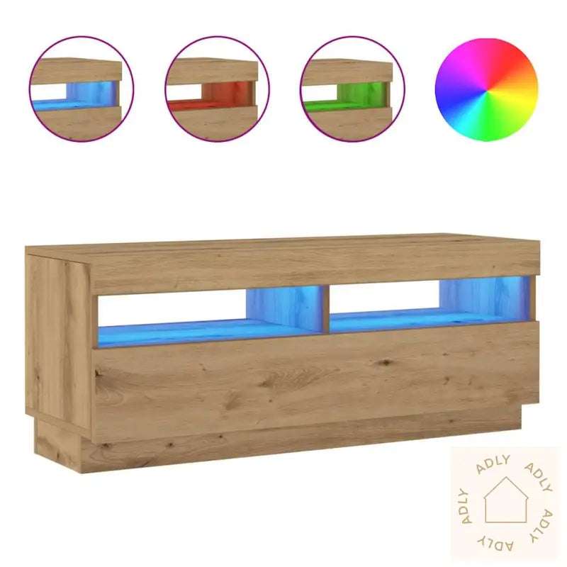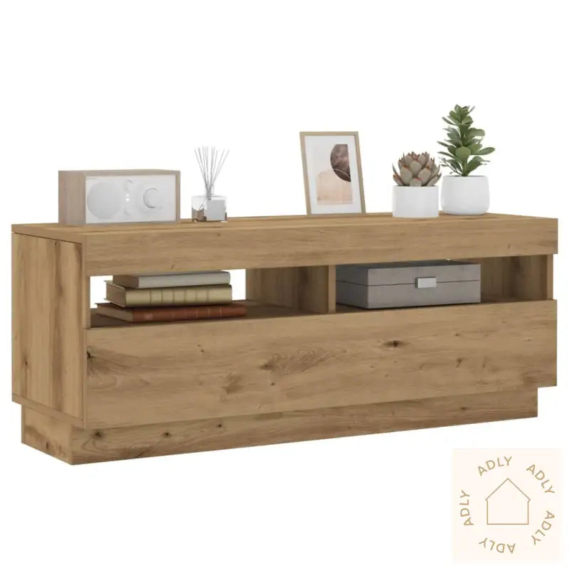 TV-benken har en USB-kontakt for RGB LED-lys, og krever en sertifisert 5V USB-strømkilde (ikke inkludert).Farge: Artisan eik, som matcher andre moderne møbler til hjemmet og gir et naturlig, tidløst uttrykk.Materiale: Konstruert tre for slitestyrke og lang holdbarhet.Mål: 100 x 35 x 40 cm (B x D x H), perfekt størrelse til både små og store rom.Praktisk inndeling med 1 dør og 2 åpne rom, som gir fleksible oppbevaringsmuligheter.Montering kreves.