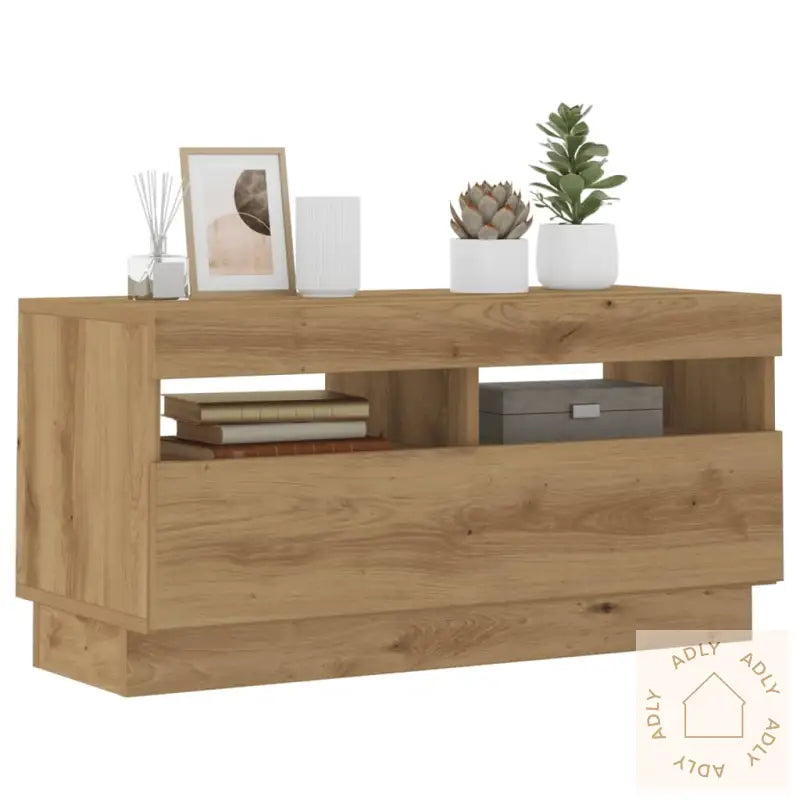 TV-benken er utstyrt med USB-kontakt og trenger en sertifisert 5V USB-strømkilde (ikke inkludert) for å bruke RGB LED-lysene.Farge: Artisan eikMateriale: Konstruert treMål: 80 x 35 x 40 cm (B x D x H)Med 1 dør og 2 åpne rom for fleksibel oppbevaringMontering kreves: ja
