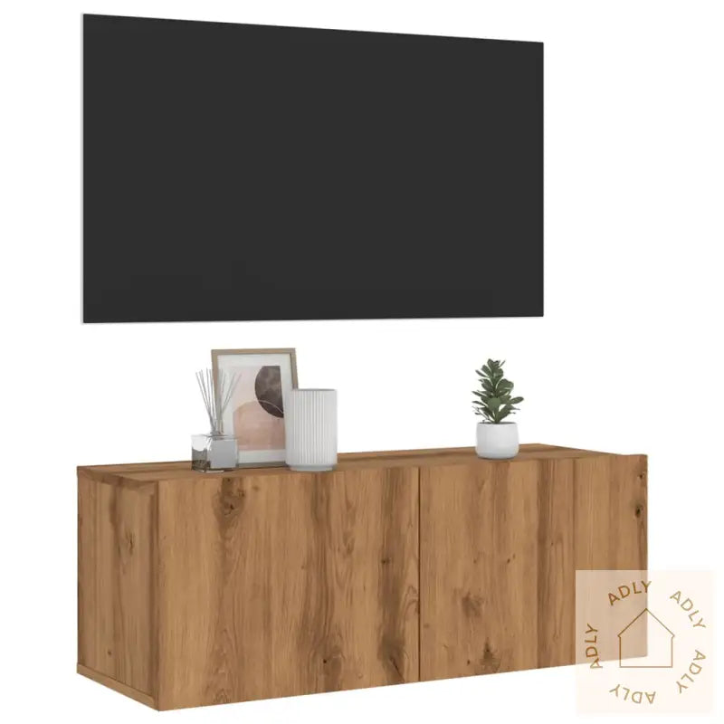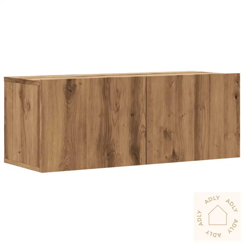 Slitesterkt materiale: TV-benken er laget av konstruert tre i høy kvalitet, noe som gir en jevn og fin overflate. Materialet er kjent for sin styrke, stabilitet og gode motstand mot fuktighet, noe som sikrer lang levetid. Enten du plasserer denne TV-benken sammen med andre møbler til hjemmet eller alene, vil den stå stødig og tåle daglig bruk.Rikelig lagringsplass: Du får god oppbevaringsplass til alt av underholdningsutstyr og tilbehør. DVD-spillere, mottakere, spillkonsoller, disker og småting får en fast plass, slik at rommet ser ryddig ut samtidig som alt er lett tilgjengelig. Praktiske dører holder ting skjult når du vil ha et minimalistisk uttrykk.Veggmontert design: Skap en luftig følelse i stua med denne veggmonterte løsningen. Den flytende TV-benken frigjør gulvplass, gir enkel rengjøring under, og gjør det lettere å holde oversikt og orden blant andre hagemøbler eller møbler. En fleksibel løsning, spesielt i mindre rom hvor plassen skal utnyttes smart.Visningsfunksjon: Det øverste planet fungerer perfekt som utstillingsflate for bilder, potteplanter eller pyntegjenstander, så du kan gi rommet ditt et personlig og innbydende preg.Godt å vite: