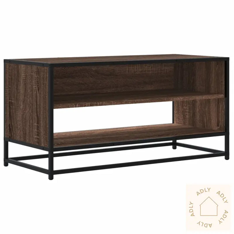 Den robuste metallrammen gir et industrielt preg til interiøret og sikrer utmerket holdbarhet og stabilitet. Rammen er motstandsdyktig mot korrosjon, så du får et møbel som varer lenge.TV-benken er laget av solid konstruert tre med en jevn overflate, noe som gjør den slitesterk og motstandsdyktig mot fukt, vridning og sprekker. Dette gir deg et pålitelig møbelvalg som står imot daglig bruk.Du får rikelig oppbevaringsplass i skuffer og hyller, perfekt for å holde alt fra magasiner, bøker og DVD-er til andre multimedieenheter organisert og innen rekkevidde. Dette gjør det enkelt å holde stua ryddig.Bordplaten er både stabil og solid, slik at du trygt kan plassere TV-en, lydanlegg eller pyntegjenstander som vaser eller potteplanter.Benken har en praktisk, vedlikeholdsfri overflate som er lett å rengjøre med en fuktig klut — ideelt for et aktivt hjem.Farge: brun eikMaterialer: konstruert tre, metallSamlet mål: 91 x 40 x 46 cm (L x B x H)Montering kreves: ja
