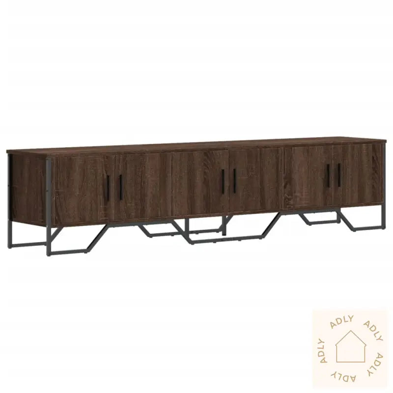 Stabilt og slitesterkt materiale: Konstruert tre gir en solid følelse og ekstra pålitelighet, samtidig som overflaten er glatt og resistente mot fuktighet, vridning og sprekker. Dette gjør at TV-benken holder seg fin lenge, uansett om den får mye bruk.Rikelig med oppbevaringsplass: Med flere romslige hyller og skap får du god plass til å organisere alt av magasiner, bøker, DVDer og medier. Det er enkelt å holde orden, slik at alt du trenger alltid er rett for hånden.Metallhåndtak: De stilige metallhåndtakene gir enkel tilgang til oppbevaringen, og løfter samtidig designet med et snev av industriell stil. Detaljene gir benken karakter og gjør den til en naturlig del av moderne hagemøbler eller andre møbler til hjemmet.Enkel å vedlikeholde: Bare tørk av med en fuktig klut for å holde TV-benken ren og pen. Det krever lite innsats, så møbelet passer ypperlig inn i en travel hverdag.Stabil og solid bordplate: Den robuste toppplaten tåler opptil 60 kg, og har god plass til både TV, stereoanlegg og pyntegjenstander som vaser eller potteplanter. Du kan trygt sette frem både tekniske produkter og dekor.Farge: brun eikMaterialer: konstruert tre, metallMål: 180 x 34 x 41 cm (B x D x H)Maksimal lastekapasitet (totalt): 60 kgMontering kreves: ja