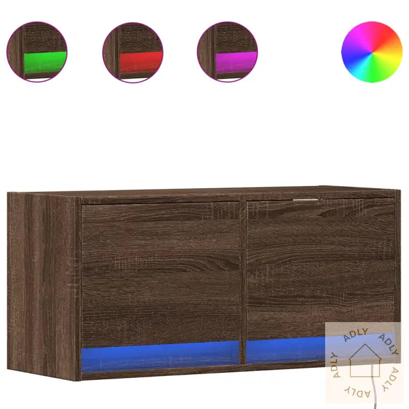 Stabilt og slitesterkt materiale: Konstruert tre gir TV-benken ekstra styrke og gjør at den holder form og farge over tid, selv med kontinuerlig bruk. Den motstandsdyktige overflaten er lett å vedlikeholde, og det solide materialet sørger for lang levetid på møbelet.RGB LED-lys for stemning: TV-benken har innebygde RGB LED-lys som lar deg velge og endre farger, lysstyrke og lyseffekter etter humør eller innredning. Lysene bidrar til en koselig atmosfære i stua eller på soverommet, og gir ekstra liv til hjemmet ditt når du slapper av foran TV-en eller gaming.Rikelig med oppbevaringsplass: Med to romslige skuffer får du enkel plass til bøker, magasiner, DVDer, småelektronikk og alt det andre du vil ha lett tilgjengelig, samtidig som du beholder et ryddig og organisert miljø hjemme. Dette gjør TV-benken til et smart valg også om du leter etter bokhyller og stående hyller for mindre rom.Plassbesparende design: Det flytende, veggmonterte designet lar deg utnytte ubrukt veggplass effektivt, så du får mer gulvplass og et moderne uttrykk. Perfekt for små eller minimalistiske hjem hvor hver kvadratmeter teller.DIY-design: Benken gir deg fleksibilitet til å bygge ut eller kombinere med andre veggmonterte møbler for et komplett underholdningssenter tilpasset dine behov. Skap din egen stil, eller bygg på flere enheter etter hvert som oppbevaringsbehovet vokser.Godt å vite: