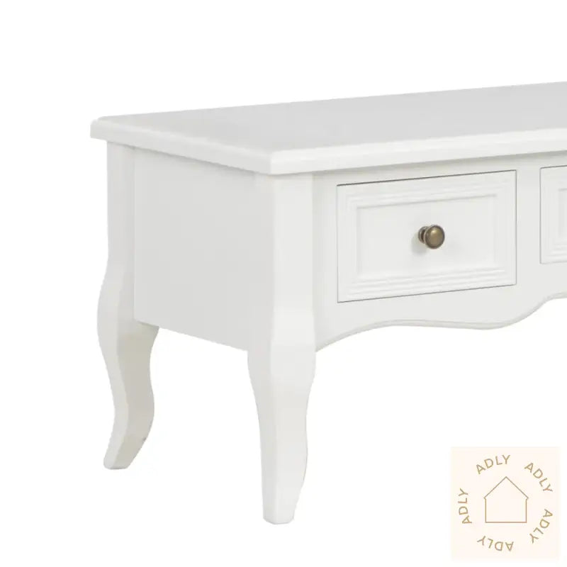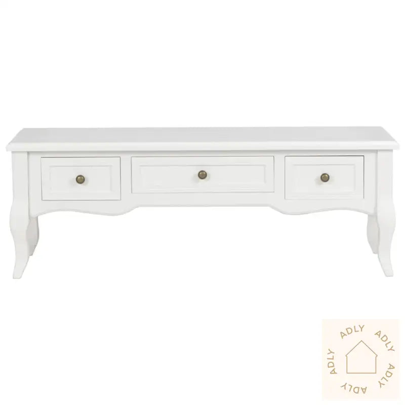 Legg til et preg av eleganse og fransk stil i stuen med vår klassiske TV-benk! Denne stilige TV-benken er inspirert av tidløs, fransk design og har tre praktiske skuffer som gir deg godt med lagringsplass til fjernkontroller, blader og annet du vil ha lett tilgjengelig. Den passer både som funksjonell oppbevaring og som et dekorativt blikkfang, enten du bruker den i stuen eller på soverommet som en del av dine møbler til hjemmet.