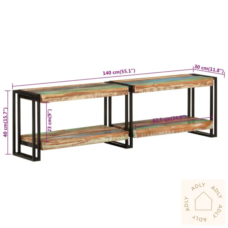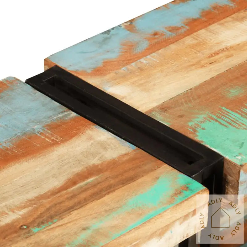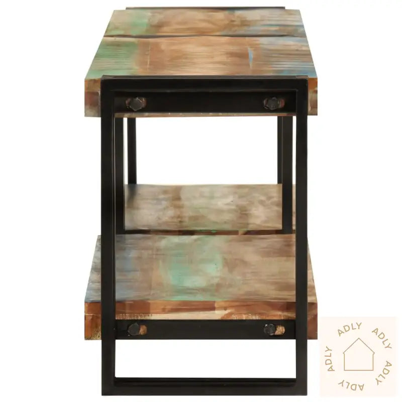 Gjenvunnet heltre: Gjenvunnet heltre består av gjenbrukt tømmer som teak, mangotre, furu og bøk. Dette bærekraftige materialet er hentet fra gamle bygninger som fabrikker, skur og båter, og gir møbelet en unik karakter, preget av historie og sjarm. Siden hvert møbel er håndlaget av gjenvunnet heltre, får du alltid ditt helt individuelle produkt med sitt eget uttrykk. Fargene og treverket vil variere fra benk til benk, noe som gir dit hjem et personlig preg med møbler som skiller seg ut.Rikelig med oppbevaringsplass: Med smarte hyller får du god plass til å organisere elektronikk, fjernkontroller eller andre nødvendigheter. TV-benken gjør det enkelt å holde orden, og du har dine viktigste ting lett tilgjengelig – perfekt for deg som liker et ryddig hjem.Metallramme: Den solide stålrammen sørger for ekstra stabilitet og lang levetid. Metallrammen gir også et kult og moderne preg som passer sømløst sammen med treverket, og gjør dette til et ekstra robust møbel til hjemmet.Visningsfunksjon: Den store og solide bordplaten i tre er ideell for å vise frem favorittplantene, bilder eller pynt. Her får du mulighet til å sette ditt personlige preg på stuens uttrykk med stilfulle detaljer.Godt å vite: