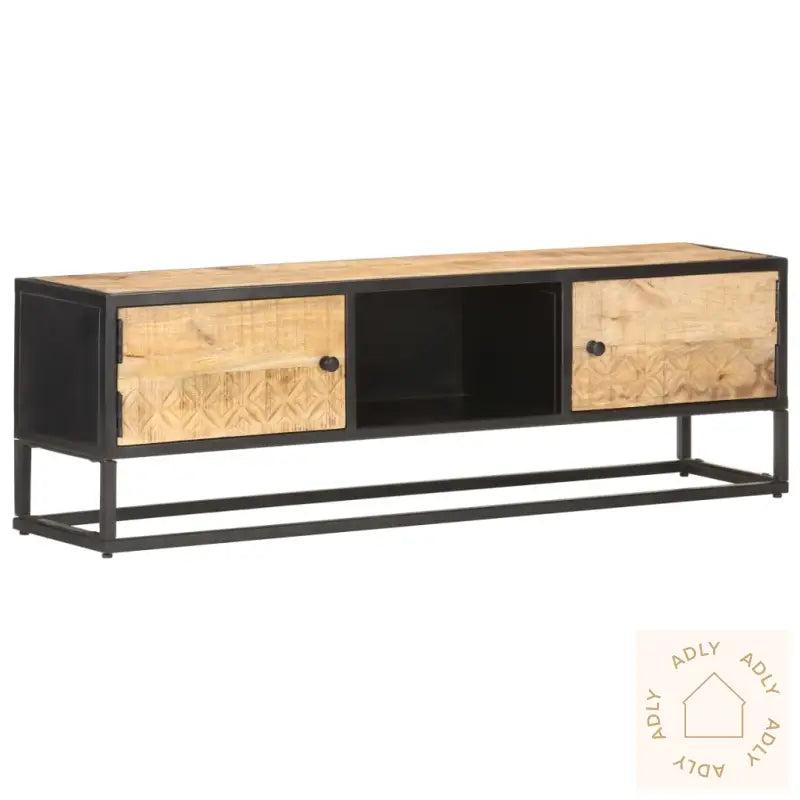 Materialer: Slitesterkt grovt mangotre med naturlig finish, ramme i pulverlakkert jernMål: 130 x 30 x 40 cm (B x D x H)Mål indre rom: 41 x 29,5 x 21,5 cm / 39 x 29,5 x 21,5 cm (B x D x H)To dører med utskåret design gir ekstra stilMontering kreves: ja