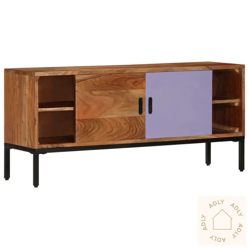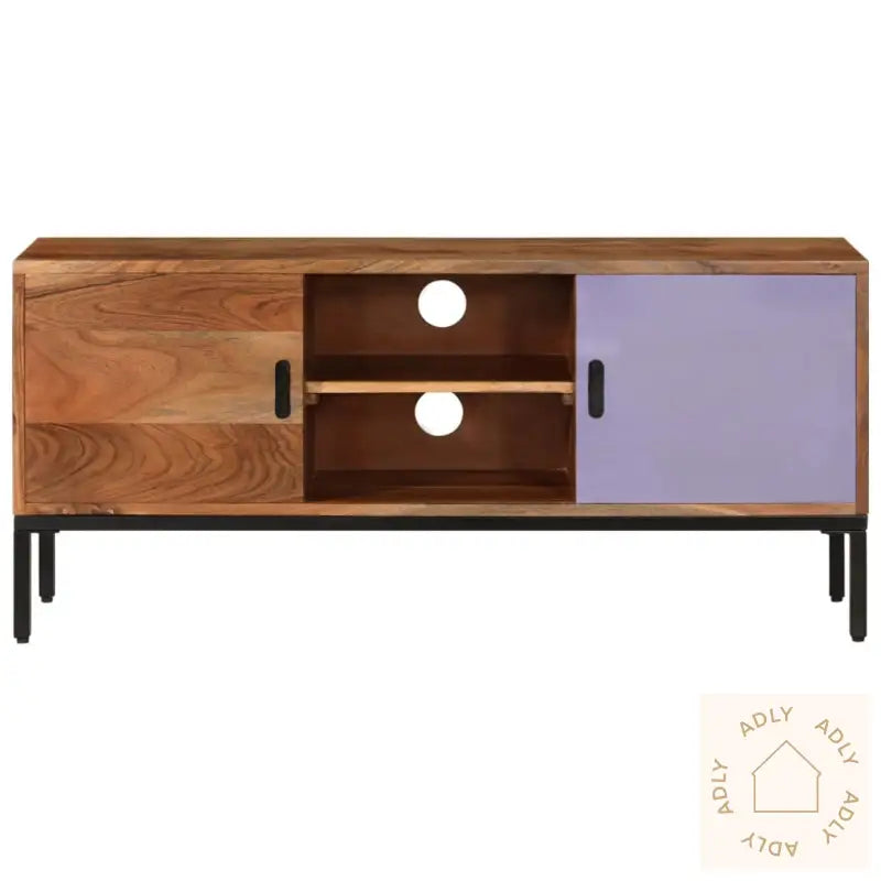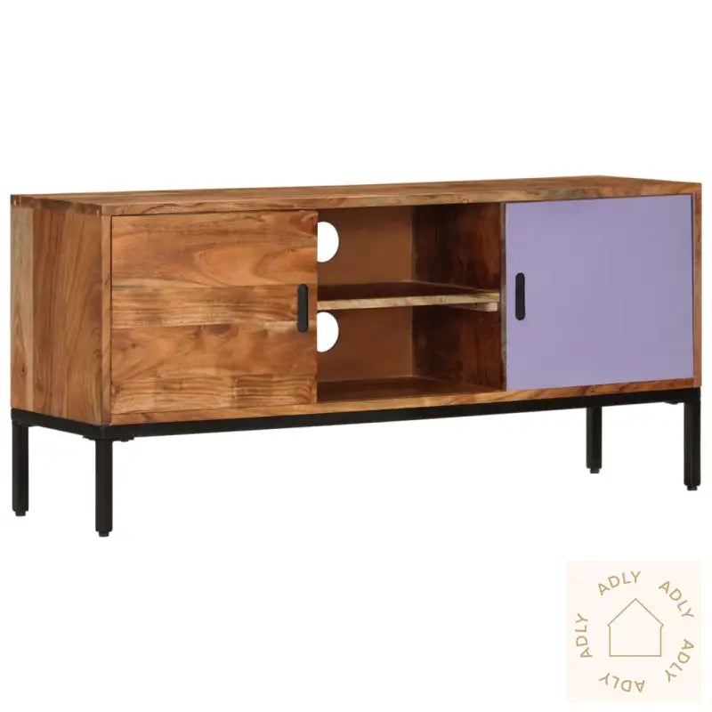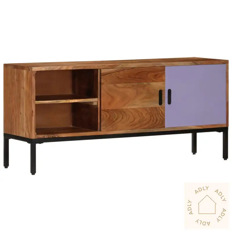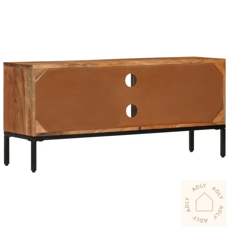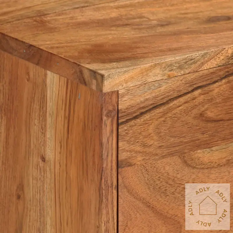 TV-benken er laget av heltre akasie, som både er kjent for sin holdbarhet og vakre struktur. Den honningbrune finishen gir møbelet et elegant uttrykk som virkelig fremhever det naturlige trekornet. Materialvalget gjør at denne benken tåler daglig bruk og samtidig ser bra ut over lang tid.