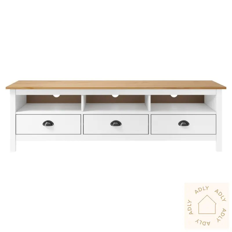 Denne slående TV-benken i klassisk, gammeldags stil blir garantert et blikkfang i stuen og gir rommet en varm og tidløs følelse. Laget av heltre furu, er TV-stativet både solid og slitesterkt, noe som gir deg et møbel som holder seg pent år etter år. Heltre furu bidrar til et naturlig og hjemmekoselig uttrykk, og gjør denne benken til et unikt tilskudd blant møbler til hjemmet.