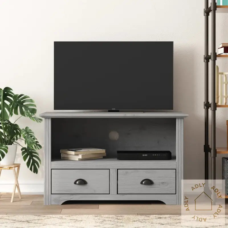 Denne klassiske TV-benken er et praktisk og blikkfangende tillegg til hjemmets innredning, og gir rommet både funksjon og karakter.