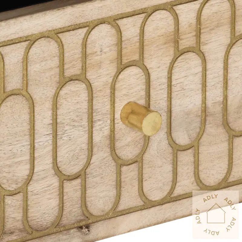 Heltre mango: Heltre mango er et slitesterkt, tropisk løvtre kjent for sin styrke og unike, levende trekorn. Ingen TV-benk er helt lik—du får et eksklusivt, naturlig utseende som gir et personlig preg på hjemmet. Dette solide materialet sørger også for lang levetid.Romslig oppbevaring: Du får rikelig med plass til å organisere magasiner, fjernkontroller, DVD-er og andre småting, så stuen ser alltid ryddig og stilren ut. Oppbevaringsløsningen gjør at både den praktiske og estetiske siden er ivaretatt.Visningsflate: Den robuste toppen av benken gir deg mulighet til å vise frem dine favorittdekorasjoner, bilder og planter. La personlige detaljer skinne og gi rommet et lunt uttrykk.Treføtter: De klassiske treføttene gir et varmt og tidløst preg, samtidig som de gir stabilitet. Den enkle, men elegante formen gjør benken lett å matche med mange typer interiør og møbler til hjemmet.Håndskåret design: De vakre, håndskårne mønstrene gjør TV-benken ekstra spesiell. Detaljene gir møblet et hint av luksus og særpreg – ekte håndverk som skiller seg ut og setter tonen i stua.Godt å vite: