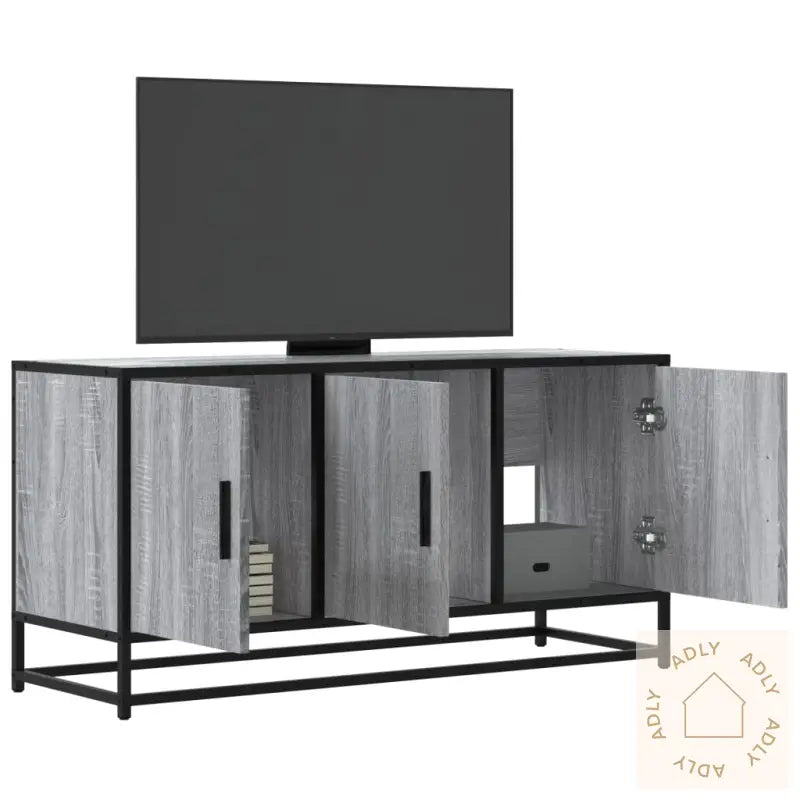 Stabil og langvarig ramme: En solid metallramme gir skapet et moderne, industrielt preg, samtidig som den sikrer holdbarhet og stabilitet over tid. Metallstrukturen gjør benken motstandsdyktig mot slitasje og korrosjon – perfekt for møbler til hjemmet du forventer skal vare.Slitesterkt og robust materiale: TV-benken er laget av konstruert tre med jevn finish, noe som betyr at den tåler fuktighet, holder formen over tid, og ikke får sprekker så lett. Dette sikrer pålitelige og solide møbler til flere ulike rom.Rikelig med oppbevaringsplass: Med god plass kan du oppbevare alt fra blader, bøker og DVDer til større multimedieenheter. Alt ligger lett tilgjengelig og du får en ryddig atmosfære hjemme, enten du bruker TV-benken som en del av hagemøbler om sommeren eller integrerer den med bokhyller og stående hyller inne.Stabil og praktisk bordplate: Den sterke platen tåler godt vekten av TV, stereoanlegg og dekorasjoner som vaser eller potteplanter, slik at du kan kombinere underholdning og interiør på én smart flate.Lettstelt: Overflaten på TV-benken gjør det enkelt å tørke bort støv og smuss med en fuktig klut – ypperlig hvis du ønsker møbler til hjemmet som krever lite vedlikehold i hverdagen.Farge: grå sonomaMaterialer: konstruert tre, metallSamlet mål: 100 x 35 x 50 cm (L x B x H)Montering kreves: ja