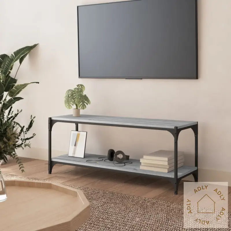 Alle våre produkter leveres med en tydelig monteringsveiledning i esken, slik at du enkelt får TV-benken på plass hjemme. Farge: grå sonoma Materialer: konstruert tre, stål Mål: 100 x 33 x 41 cm (B x D x H)