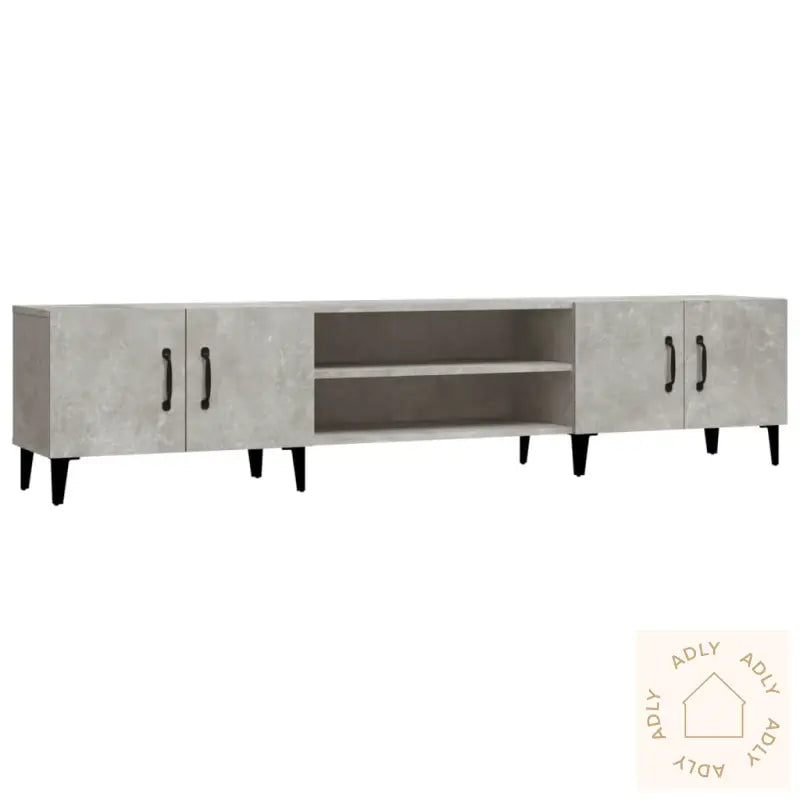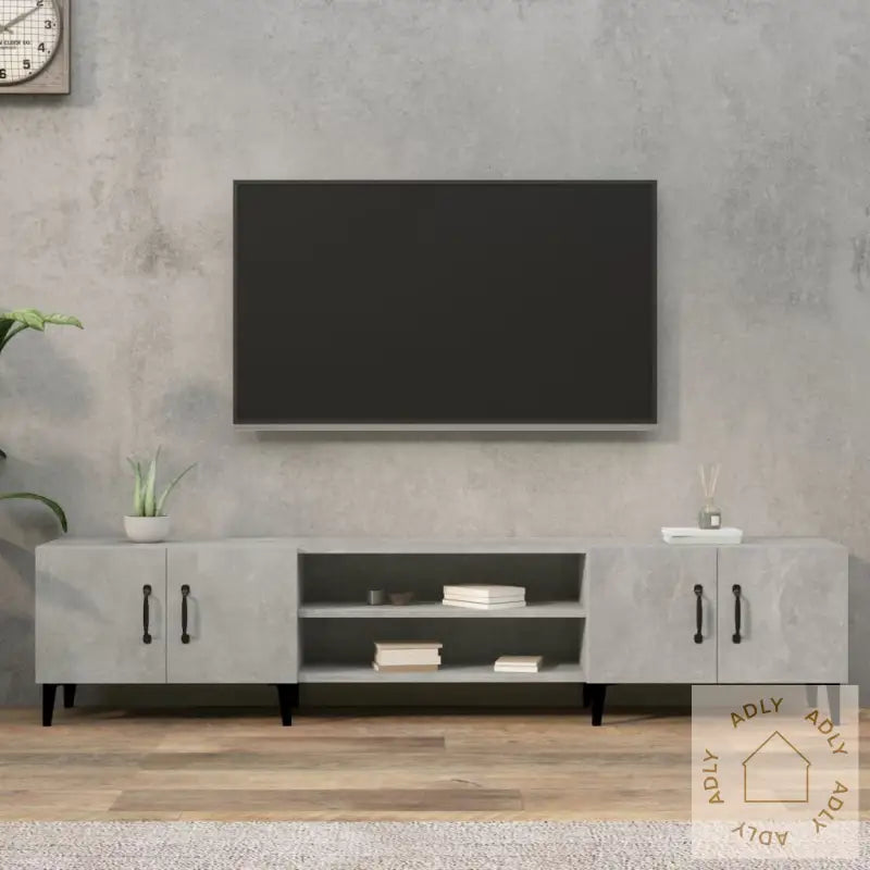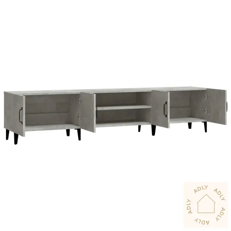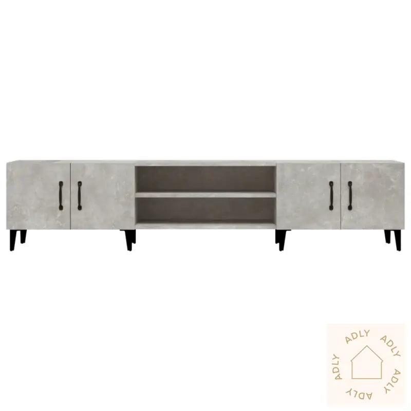 Slitesterkt materiale: TV-benken er laget av konstruert treverk av høy kvalitet. Dette materialet har en jevn overflate, og er kjent for å vare lenge, stå stødig og tåle litt fuktighet – helt supert hvis du ønsker slitesterke møbler som også ser bra ut over tid.Rikelig med lagringsplass: Med 4 åpne rom og 4 dører får du rikelig med fleksibel plass til alt fra bokhyller og stående hyller til elektronisk utstyr, bøker eller dekor. Denne løsningen hjelper deg å holde stuen eller tv-rommet ryddig, og gjør det enkelt å ha ting tilgjengelig.Metallføtter: De slitesterke metallføttene gir en ekstra touch av moderne ro til møblene, og sørger samtidig for at TV-benken står stabilt uansett hva slags gulv du har hjemme.Visningsfunksjon: Den solide toppflaten gir plass til å vise frem personlige favoritter som grønne planter, innrammede bilder eller andre dekorative elementer – en perfekt måte å gjøre møblet til en naturlig del av hjemmets stil.Godt å vite: