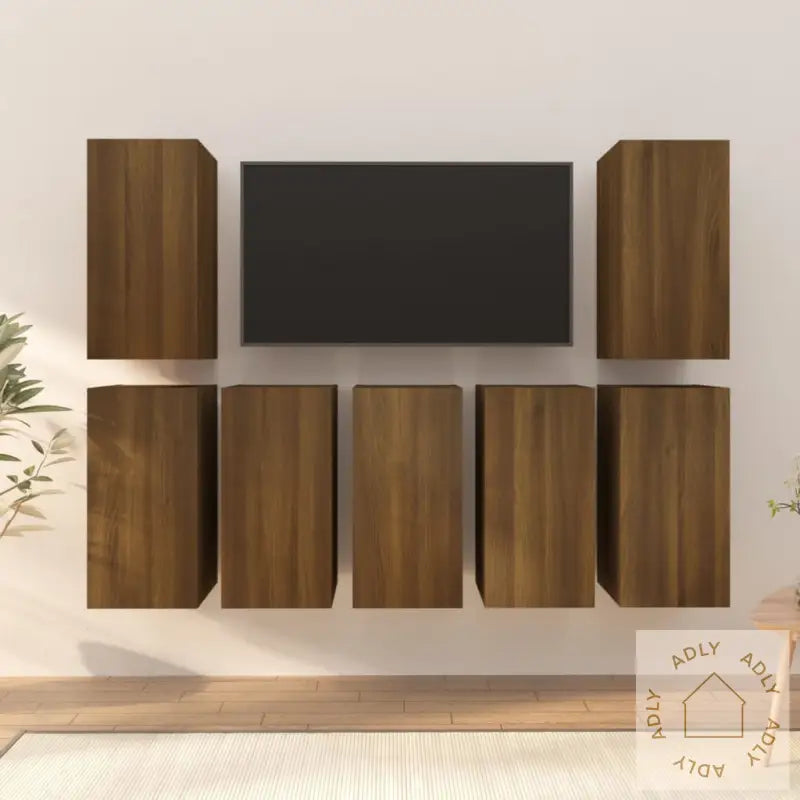 Skrue(r) og plugg(er) til innfesting i vegg følger ikke med. Velg skruer og plugger som passer til din veggtype. Hvis du er usikker, anbefales det å kontakte en profesjonell. Følg monteringsanvisningen nøye for et sikkert og trygt resultat.Farge: brun eikMateriale: konstruert treMål: 30,5 x 30 x 60 cm (B x D x H)Montering kreves: jaLeveransen inneholder:7 x TV-benker