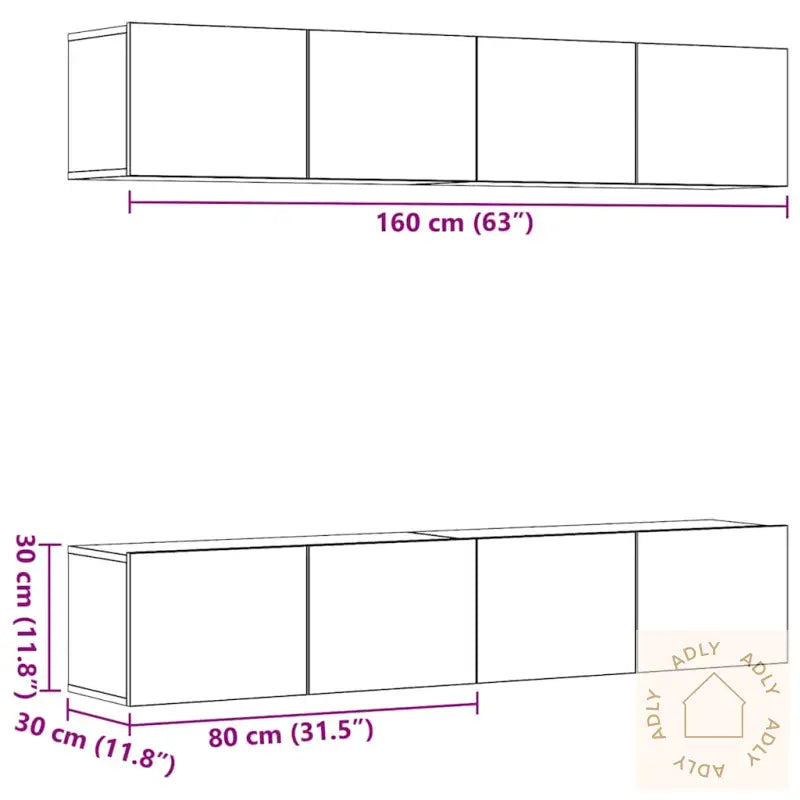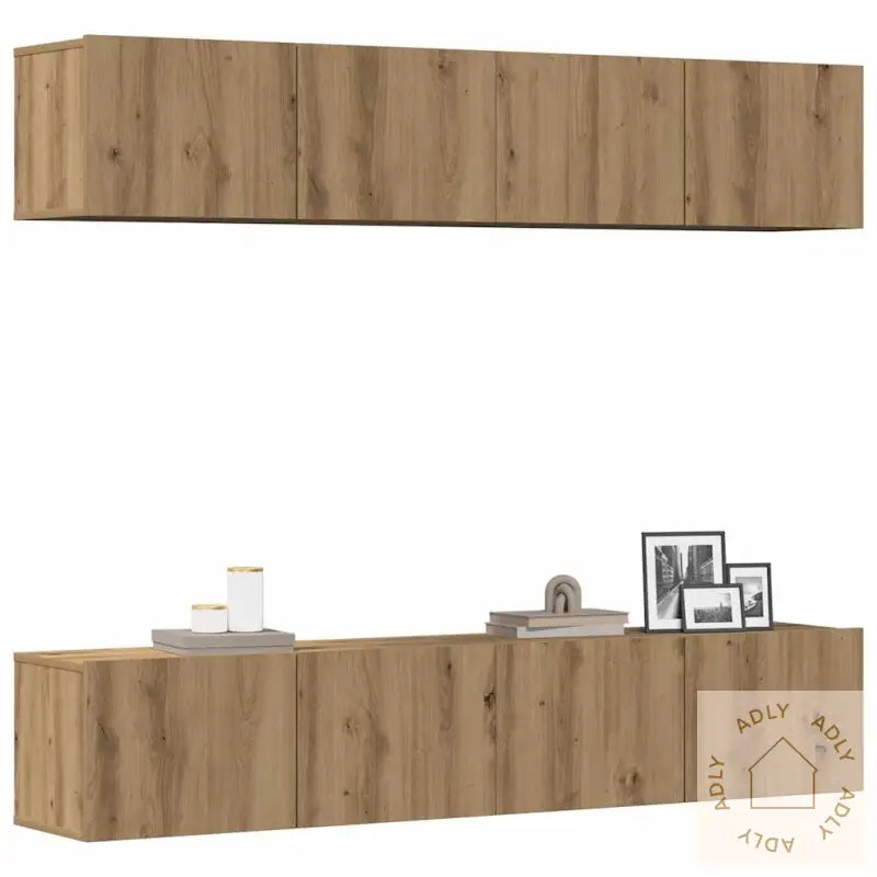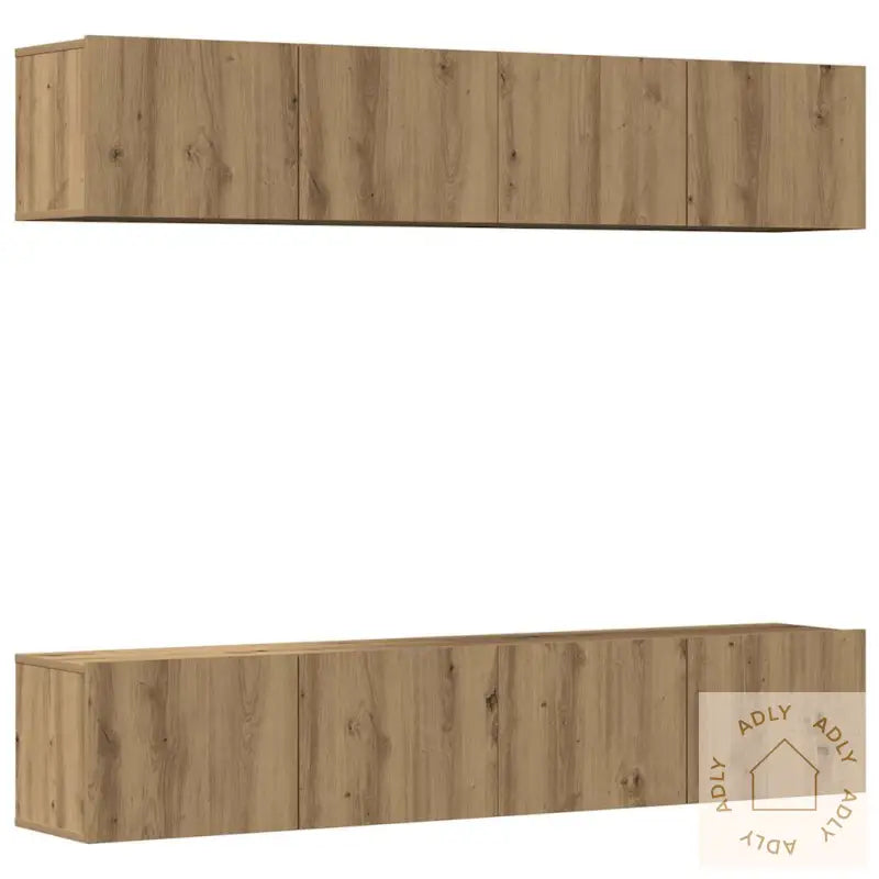 Skruer og plugger til veggmontering følger ikke med, så bruk passende festemidler for din veggtype. Ta gjerne kontakt med fagperson hvis du trenger råd. Husk også å følge monteringsinstruksjonene steg for steg.Farge: artisan eikMateriale: konstruert treMål (veggmontert TV-skap): 80 x 30 x 30 cm (B x D x H)Maksimal total vektkapasitet: 60 kgMontering krevesLeveransen inneholder:4 x vegghengt TV-skap