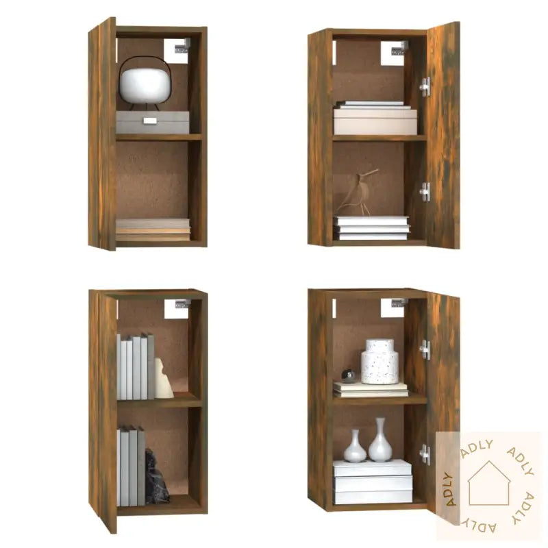 Skrue(r) og plugg(er) til montering i veggen er ikke inkludert. Velg festemidler som passer for akkurat din veggtype. Dersom du føler deg usikker på valg av skruer eller plugger, anbefaler vi å søke profesjonell hjelp. Følg instruksjonene nøye før montering.En detaljert monteringsveiledning følger med hver pakke for enkel og rask montering.Farge: røkt eikMateriale: konstruert treMål: 30,5 x 30 x 60 cm (B x D x H)Pakken inneholder:4 x TV-benk