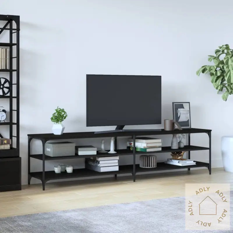 Slitesterkt materiale: Den er laget av konstruert treverk av høy kvalitet, som har en jevn overflate og tåler daglig bruk. Materialet gir styrke, stabilitet og motstår fukt, noe som gjør TV-benken ideell ved behov for solide møbler til hjemmet. Den robuste metallrammen sørger for ekstra støtte og forbedrer varigheten på møbelet.