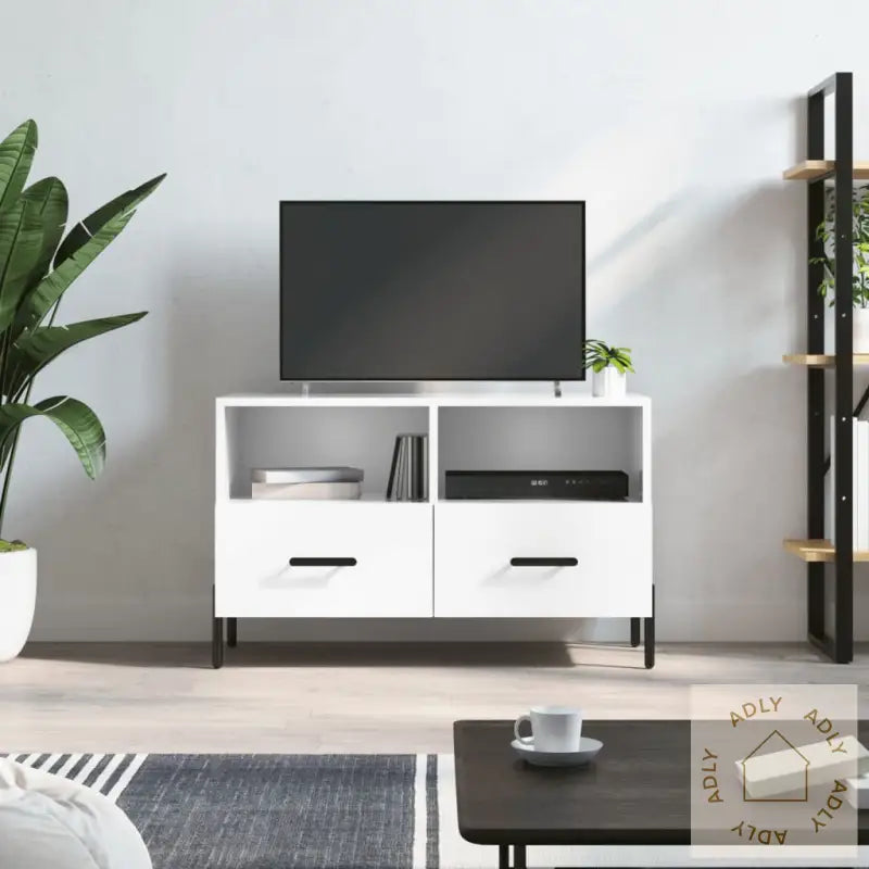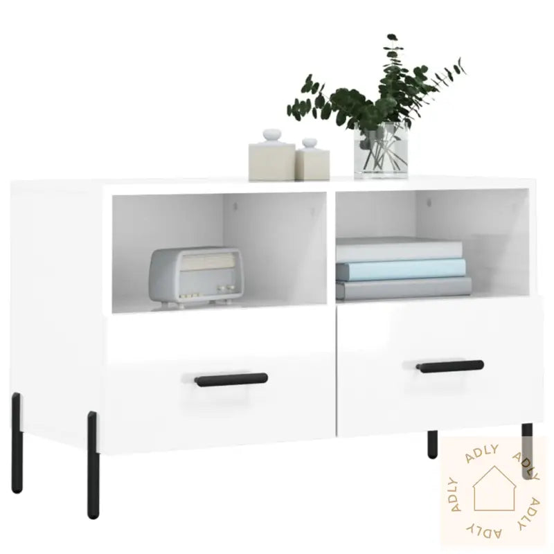 For å unngå at TV-benken velter, må du bruke de medfølgende veggfestene.Farge: høyglans hvitMaterialer: konstruert tre, jernMål: 80 x 36 x 50 cm (B x D x H)Montering kreves: jaLegal Documents: