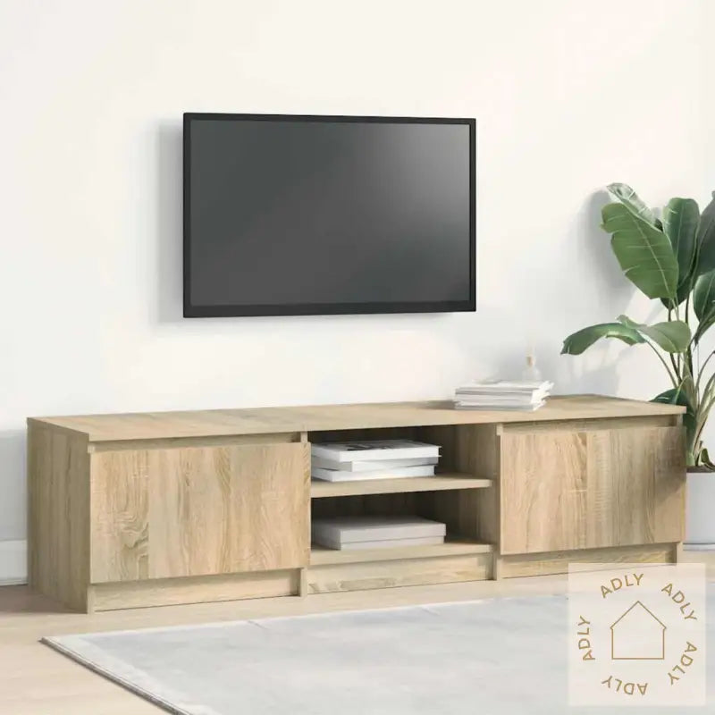 Farge: sonoma eikMateriale: konstruert treMål: 140 x 40 x 35,5 cm (L x B x H)Med 2 dører og 2 åpne rom