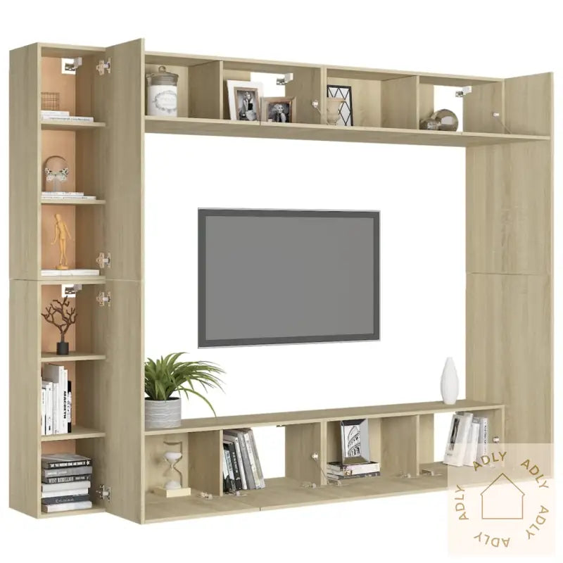Dette solide TV-benksettet i sonoma eik er laget for å bli et ordentlig blikkfang i rommet, med et moderne, men samtidig praktisk design alle vil legge merke til. Med sitt tidløse uttrykk og rene linjer passer det perfekt inn blant andre møbler til hjemmet.